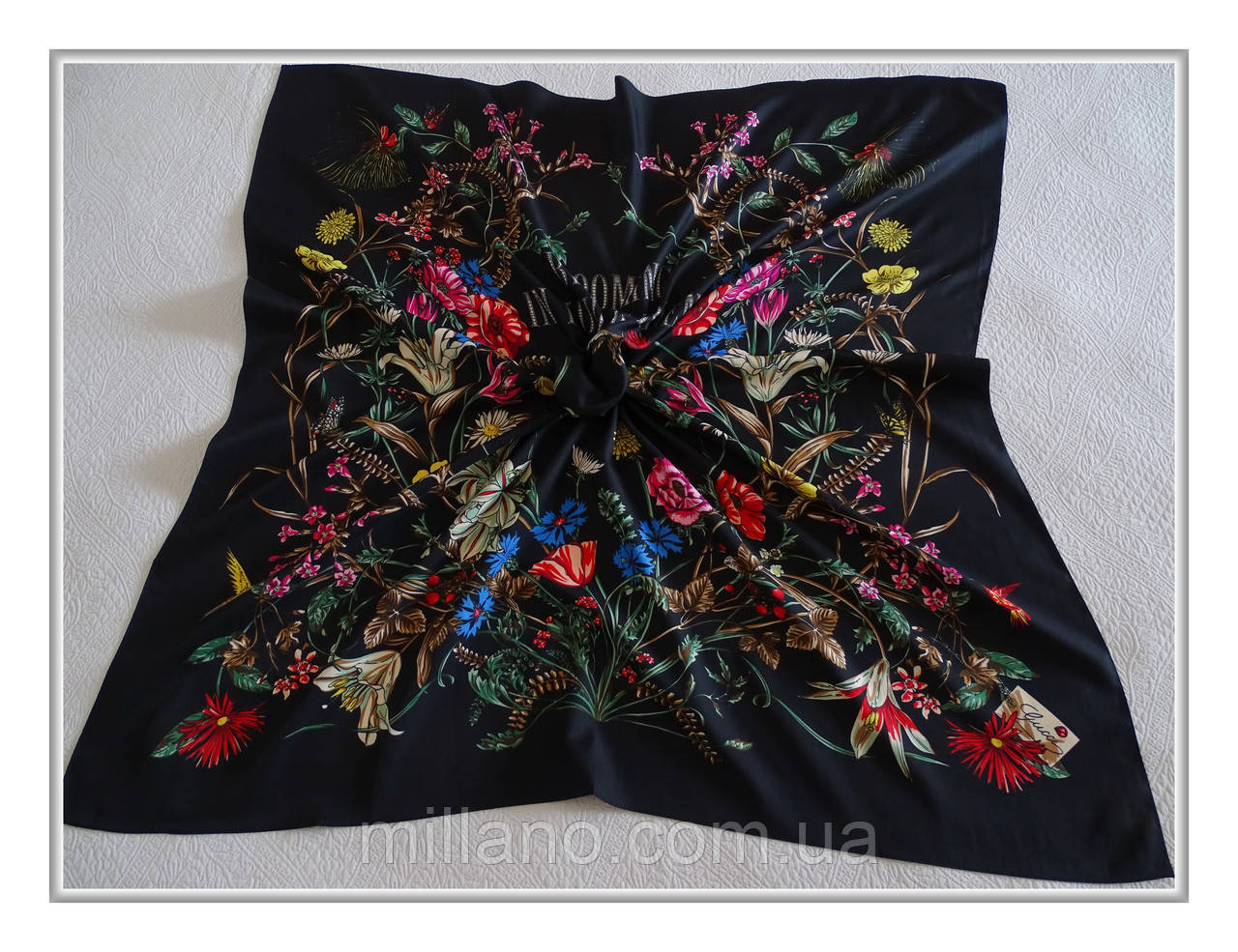 Хустка GG розмір 90 х 90 шовк 100%. Цей модний аксесуар прикрасить будь-яке ваше вбрання. Додасть красу, ніжність, неповторний шарм і чарівність. Довговічна у використанні. не сповзає з голови та дуже приємна на дотик до тіла. Літо, весна, осінь.