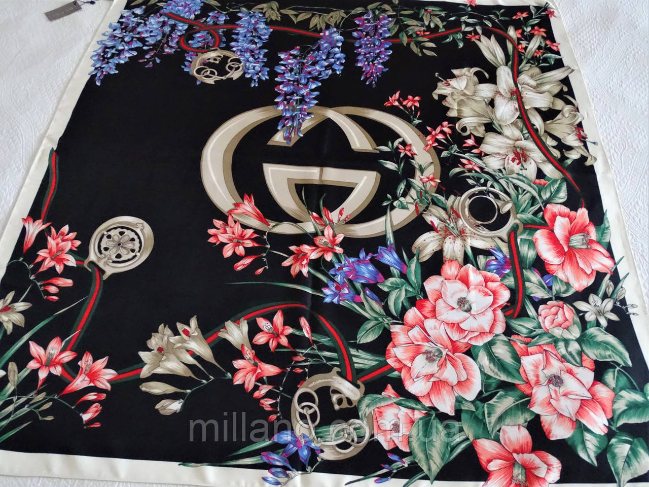Хустка GG розмір 90 х 90 шовк 100%. Цей модний аксесуар прикрасить будь-яке ваше вбрання. Додасть ніжності. красу й елегантність. Довговічна у використанні, не зповзає з голови та дуже приємна на дотик до тіла. Літо, весна, осінь.